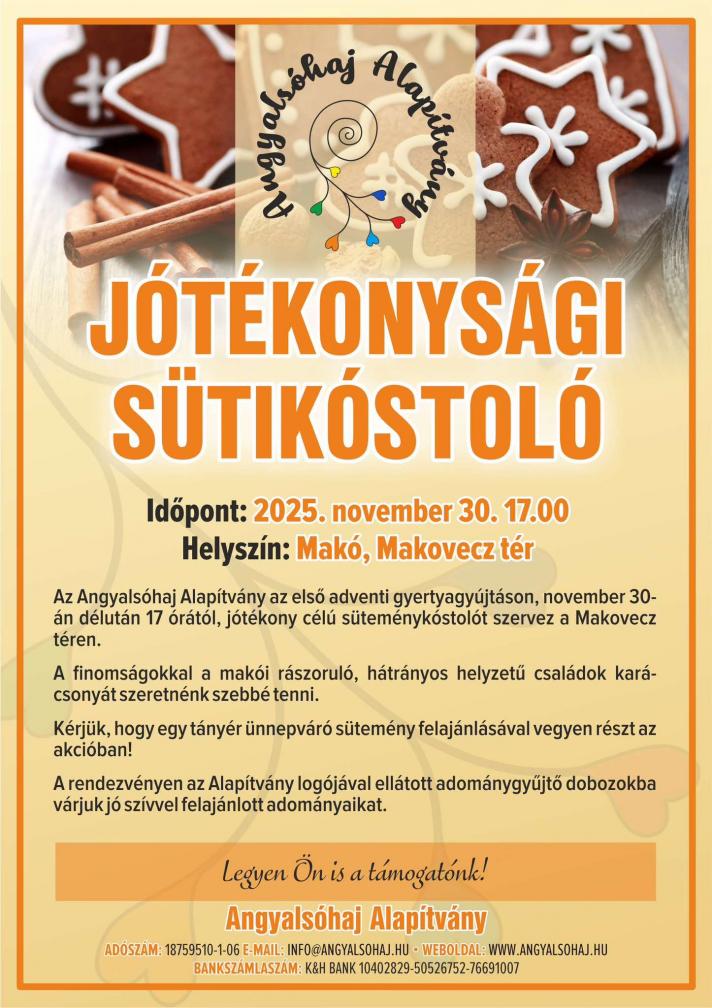 Ezúttal is csodás édességeket adunk cserébe az adományokért, várunk mindenkit a Makovecz térre!